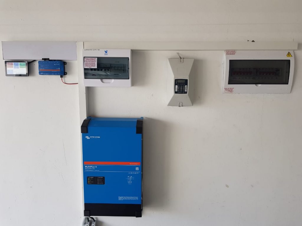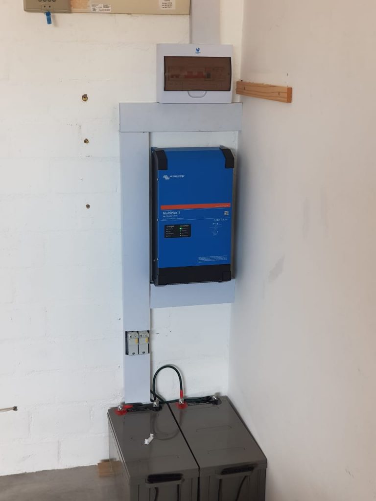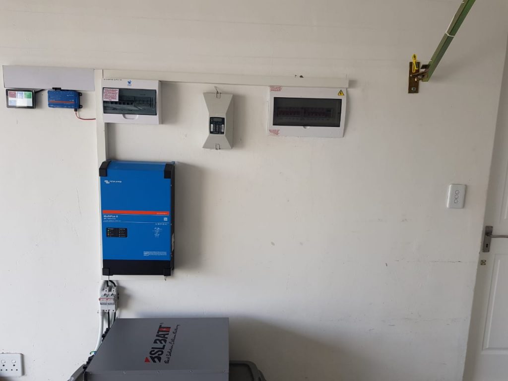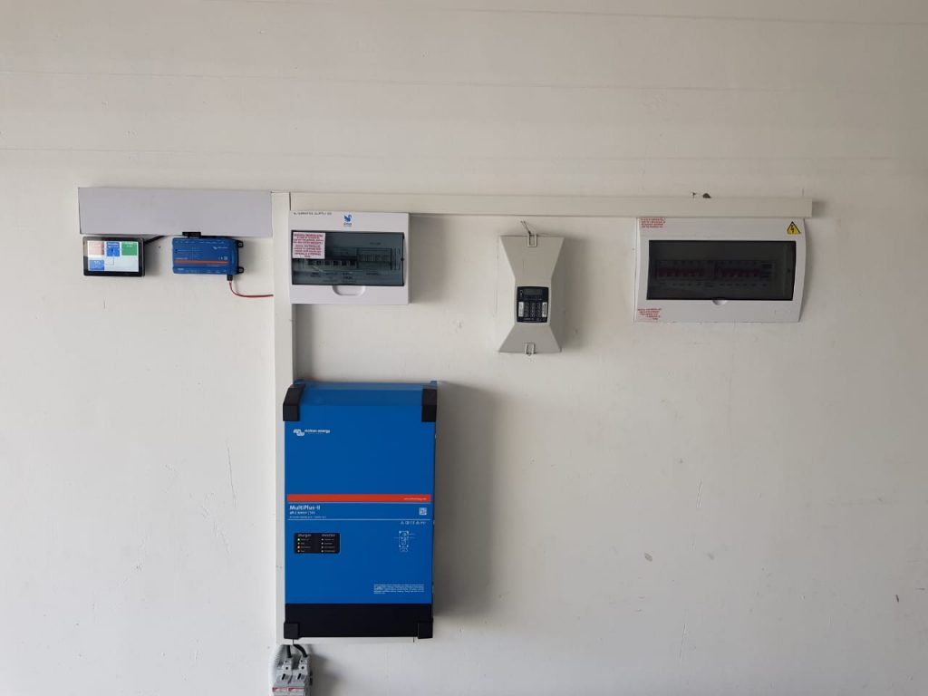 Victron multiplus inverter installed as back up supply, complete with cerbo Gx and touch 50 colour screen and BSL lithium battery.